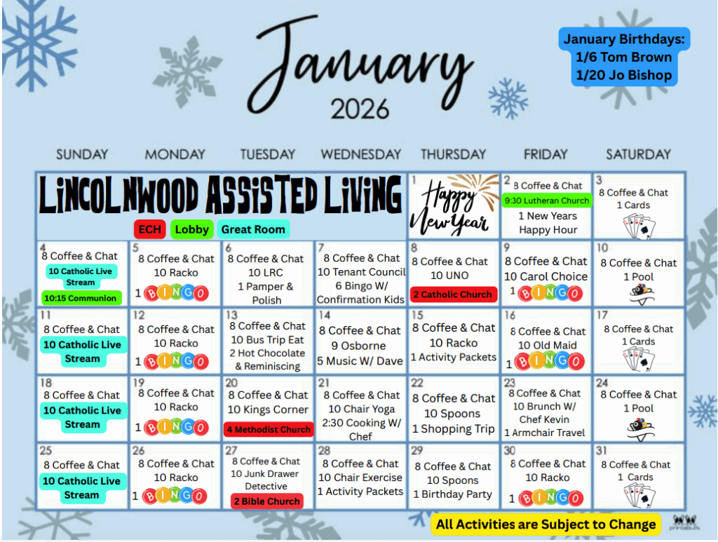 Assisted Living Activity Calendar- January 2026